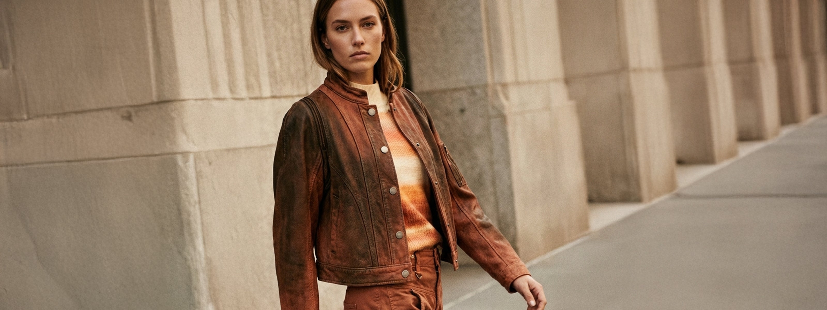 The Street jacket recalls the design of a trench coat in its upper part - with the classic double-breasted construction, rounded notched collar and shoulder tabs - while the lower part borrows elements from a bomber, such as the practical front zip, technical fabric, and elasticated ribbed hem.